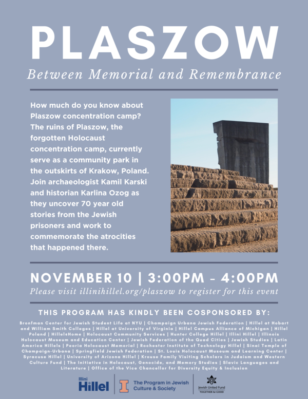 Champaign Urbana Jewish Federation | Hillel at Hobart and William Smith Colleges | Hillel at University of Virginia | Hillel Campus Alliance of Michigan | Hillel Poland | Hillel@Home | Holocaust Community Services | Hunter College Hillel | Illini Hillel | Illinois Holocaust Museum and Education Center | Jewish Federation of the Quad Cities | Jewish Studies | Latin America Hillels | Peoria Holocaust Memorial | Rochester Institute of Technology Hillel | Sinai Temple of Champaign-Urbana | Springfield Jewish Federation | St. Louis Holocaust Museum and Learning Center | Syracuse Hillel | University of Arizona Hillel | Krouse Family Visiting Scholars in Judaism and Western Culture Fund | The Initiative in Holocaust, Genocide, and Memory Studies | Slavic Languages and Literature | Office of the Vice Chancellor for Diversity Equity & Inclusion