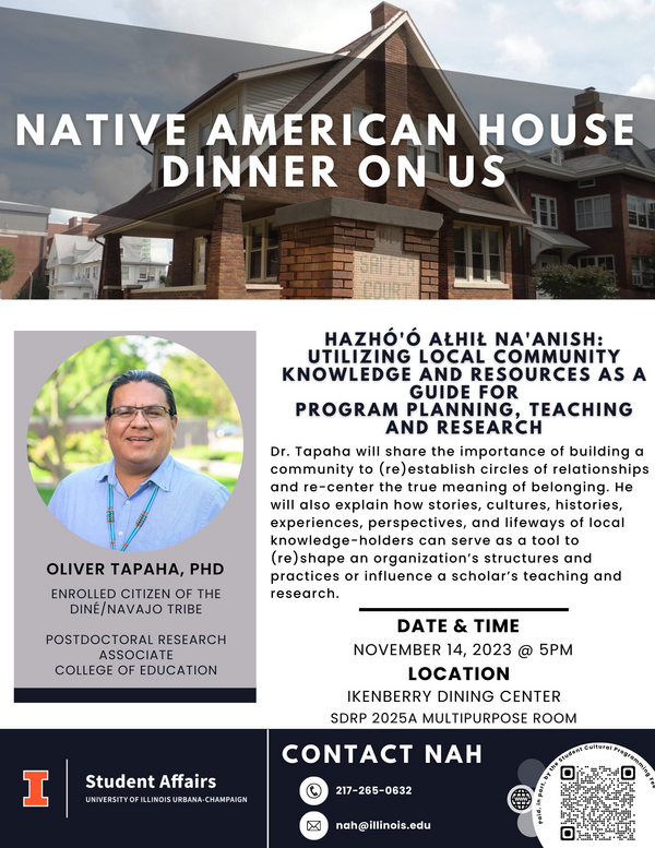 This session will occur in conjunction with University Housing and it's Native-themed meals during Native American Heritage Month at Ikenberry Dining Center, SDRP 2025A Multipurpose Room.