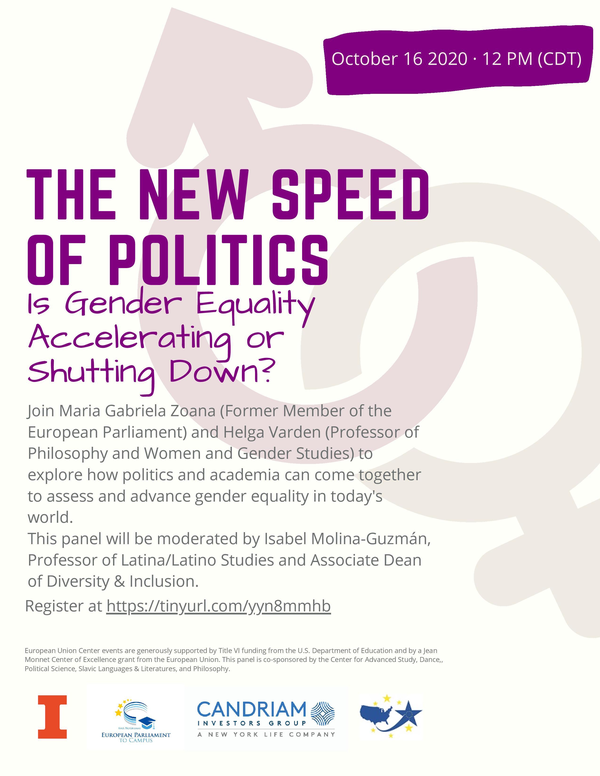This event will bring together in conversation Maria Gabriela Zoana and Helga Varden to explore how politics and academia can come together to assess and advance gender equality in today’s world. Maria Gabriela Zoana is a Romanian Former Member of the European Parliament with expertise on questions of gender equality. Helga Varden is a Professor of Philosophy and Women and Gender Studies at the University of Illinois and a philosopher who has worked on feminism, ethics and law. The panel will be moderated by Isabel Molina-Guzmán, Professor of Latina/Latino Studies and Associate Dean of Diversity & Inclusion, College of Liberal Arts & Sciences at the University of Illinois.