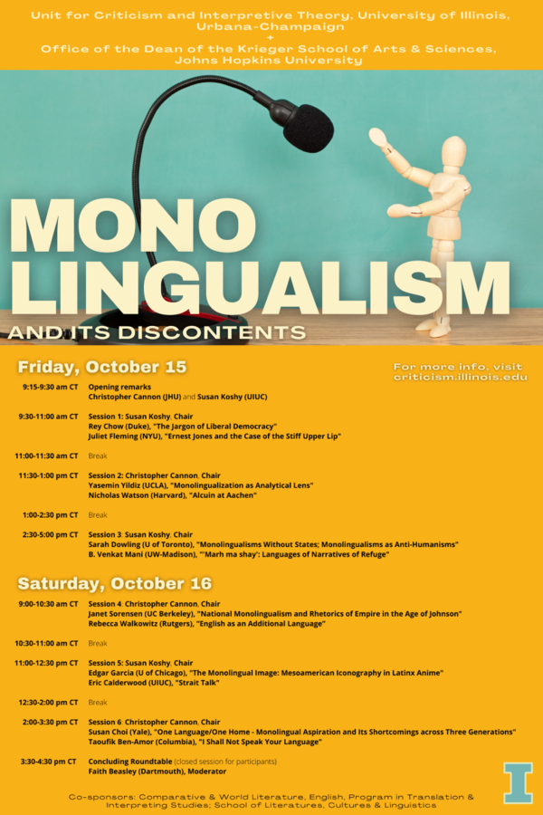 Sarah Dowling (U of Toronto), "Monolingualisms Without States; Monolingualisms as Anti-Humanisms"