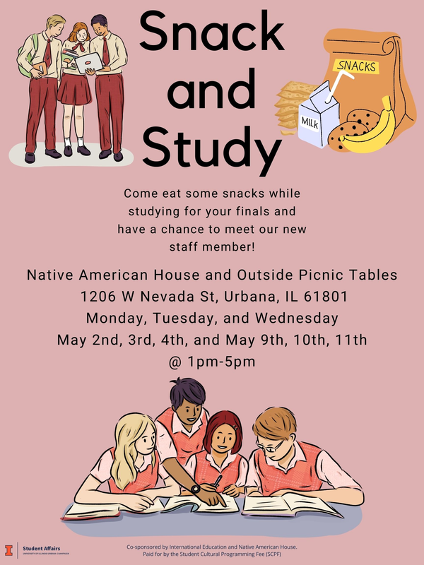 Come eat some snacks while studying for the finals and meet our new staff with Native American House and International Education. Sponsored by Native American House and International Education. Paid for by the Student Cultural Programming Fee (SCPF).