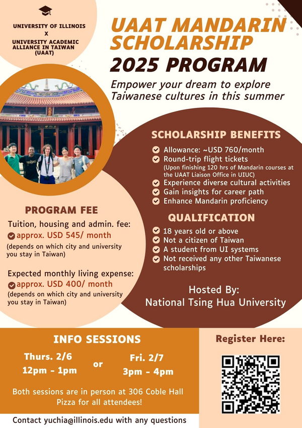 - complete 120 hours of Mandarin courses through our UAAT liaison at UIUC (for airfare support)