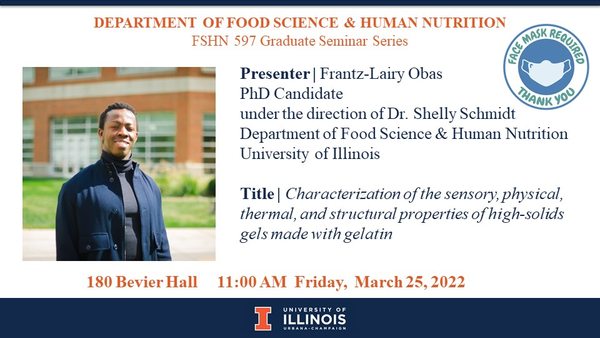 Characterization of the sensory, physical, thermal, and structural properties of high-solids gels made with gelatinTo attend virtually: https://illinois.zoom.us/j/88352520047?pwd=RnpUbWR1NTdJc1ZUUXBTRHFOK25WQT09