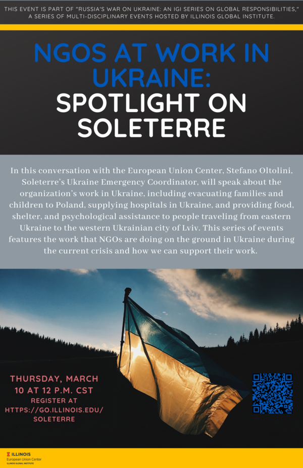 This is a series of events featuring the work that NGOs are doing on the ground in Ukraine during the current crisis and how we can support their work. Soleterre is an Italian non-profit organization working in healthcare and social justice. In this interview, Stefano Oltolini, Soleterre’s Ukraine Emergency Coordinator, will speak about the organization’s work in Ukraine, including evacuating families and children to Poland, providing medicine to hospitals in Ukraine, and providing food, shelter, and psychological assistance to people traveling from eastern Ukraine to the western Ukrainian city of Lviv.