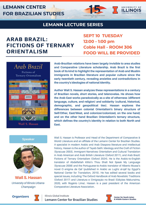 Author Waïl S. Hassan analyzes these representations in a century of Brazilian novels, short stories, and telenovelas. He shows how the Arab East works paradoxically as a site of otherness (different language, culture, and religion) and solidarity (cultural, historical, demographic, and geopolitical ties). Hassan explores the differences between colonial Orientalism's binary structure of Self/Other, East/West, and colonizer/colonized, on the one hand; and on the other hand Brazilian Orientalism's ternary structure, which defines the country's identity in relation to both North and East.Food will be provided.
