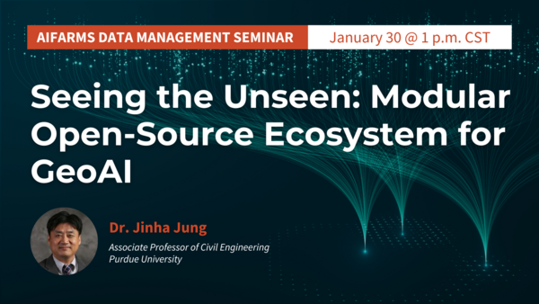 The AIFARMS Institute invites you to join us in person or via Zoom on January 30, 2025, for an exciting seminar titled "Seeing the Unseen: Modular Open-Source Ecosystem for GeoAI."