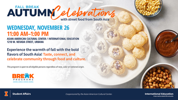 Join us for Fall Break Autumn Celebrations: a festive gathering featuring street foods from South Asia. Taste, connect, and celebrate community through food and culture.