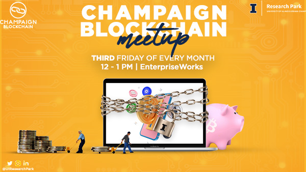 Held on the third Friday of the month, 12:00 to 1:00 PM. For more information and to RSVP, please visit the Champaign Blockchain Meetup page.