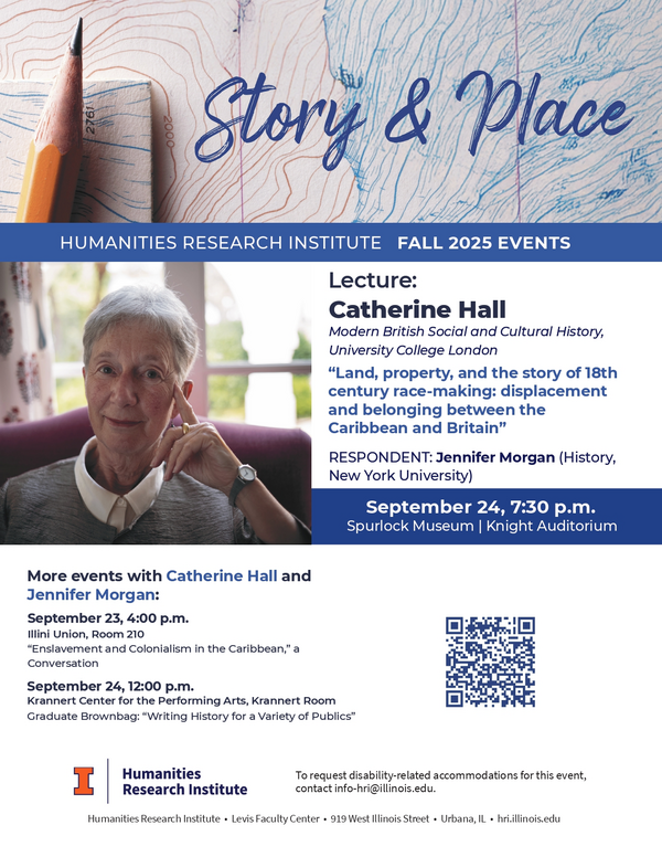 Join us as the Humanities Research Institute launches its 2025–26 theme, “Story & Place,” with a two-day campus visit from renowned historians Catherine Hall (University College London) and Jennifer Morgan (New York University).