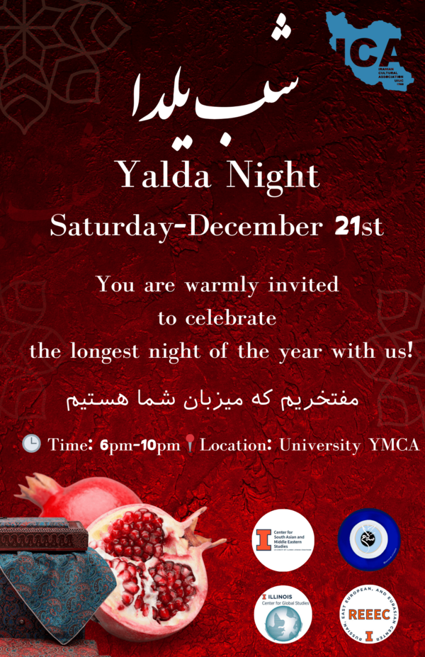- The Iranian Cultural Association at UIUC cordially invites you to join us for a Yalda Night celebration, one of the most ancient and cherished Iranian festivals. Yalda Night, which marks the longest night of the year, is a symbol of the triumph of light over darkness and the beginning of a new period of brightness. The celebration typically includes poetry recitations, storytelling, traditional music, and special foods such as pomegranates and watermelon, representing cultural and social connection in Iranian heritage.Date: Saturday, December 21, 2024