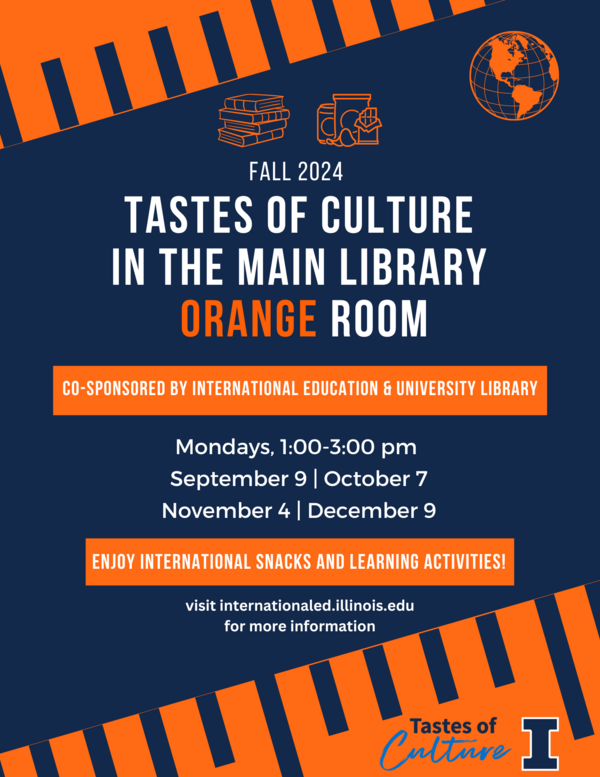 Enjoy some international snacks and drinks with cross-cultural learning activities. Sponsored by International Education and the University Library.