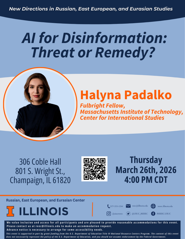 REEEC New Directions Lecture: Halyna Padalko, "AI for Disinformation: Threat or Remedy?”