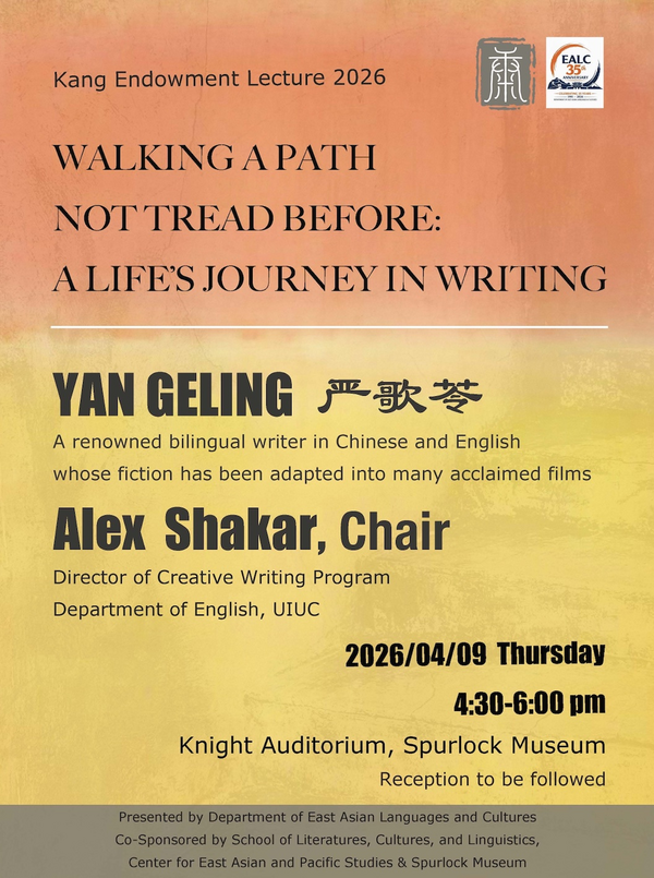 Join us for CEAPS's co-sponsored 2026 Kang Endowment Lecture, titled “Walking a Path not Tread Before: A Life’s Journey in Writing” featuring Yan Geling, chaired by Alex Shakar on April 9 (Reception to be followed)!