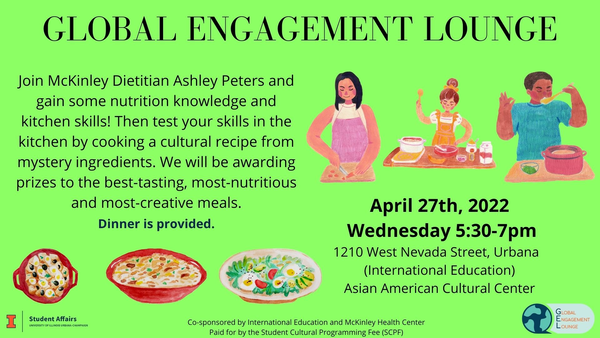 Join McKinley Dietitian Ashley Peters and gain some nutrition knowledge and kitchen skills and then test your skills in the kitchen to cook a cultural recipe from mystery ingredients. We will be awarding prizes to the best tasting meal, most nutritious and most creative meals. Dinner is provided.