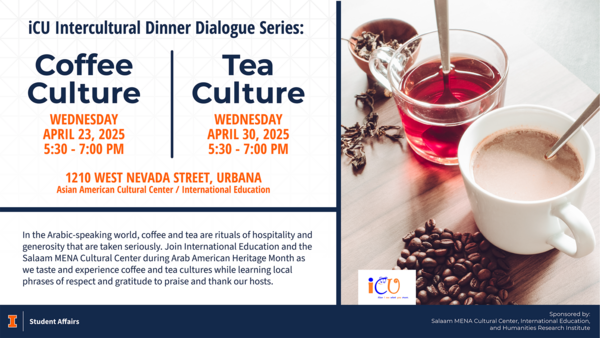 In the Arabic-speaking world, coffee and tea are rituals of hospitality and generosity that are taken seriously. Join International Education and the Salaam MENA Cultural Center during Arab American Heritage Month as we taste and experience coffee and tea cultures while learning local phrases of respect and gratitude to praise and thank our hosts. Dinner is provided.