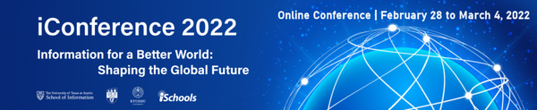iConference 2022 will be entirely virtual, taking place online Feb. 28 - March 4, 2022. See our Call For Participation for more details, and please share the call with friends and colleagues.