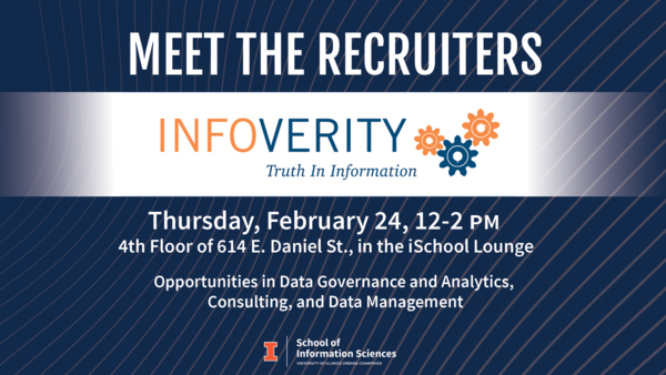 - Connect with Jen Toreja, Associate Director at Infoverity, to learn more about the internship and full-time entry-level opportunities available at one of the fastest growing consulting firms in the Midwest. Jen will be in the iSchool Lounge on the 4th floor of 614 E. Daniel Street to answer your questions, chat, and connect! Infoverity consultants work, among others, in the areas of data management, data governance and data security. Stop by and learn more!Contact informationRandy Dineen, Corporate RecruiterLocation614 E. Daniel Street, iSchool Lounge, Champaign, Illinois, United States