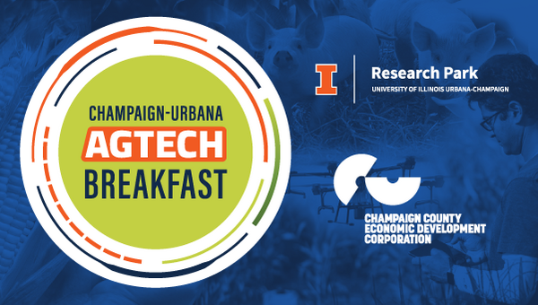 Research Park and the Champaign County Economic Development Corporation host a Champaign-Urbana AgTech Breakfast for community leaders and local professionals in the agricultural technology sector. The event is by invite-only and held 8:00-9:30am at the Illinois Conference Center.