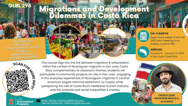 This Short-term faculty-led GLBL 298 course on Migrations and Development Dilemmas in Costa Rica could be the perfect fit for you! Join LAS International Programs and Professor Nikolai Alvarado as we go over course/program specifics such as coursework, program objectives, brief background into La Carpio, San Jose, program dates, application requirements/expectations, and more!