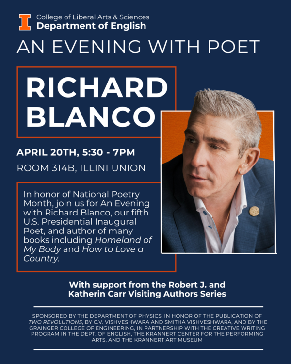 Richard Blanco will also be attending a book reading and signing with Smitha Vishveshwara on April 21. Click here for more details: Luminous: An Evening of Poetry & Prose With Poet-Engineer Richard Blanco and Physicist-Artist Smitha Vishveshwara