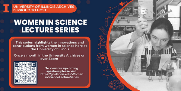 The University of Illinois Archives’ monthly Women in Science Lecture Series features speakers from across the University of Illinois Urbana-Champaign’s diverse and multidisciplinary scientific enterprise. The lecture series seeks to highlight the important innovations and contributions of women in the sciences at the University of Illinois, and center the importance of documenting women scientists and engineers to create a diverse and inclusive archival record. This lecture series will take place both in person at the University Archives and over Zoom on the second Thursday of every month from 12:00 to 1:00 pm (please note that some lectures may take place on a different day of the week based on schedules).
