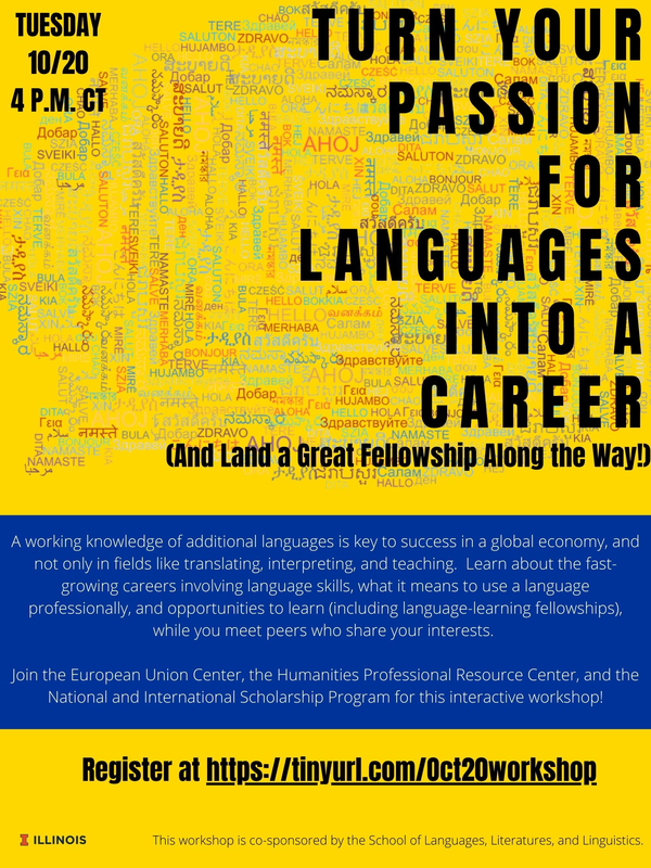 Learn about the fast-growing careers involving language skills, what it means to use a language professionally, and opportunities to learn (including language-learning fellowships), while you meet peers who share your interests. This interactive workshop will be led by the European Union Center, the Humanities Professional Resource Center, and the National and International Scholarship Program. Register here!