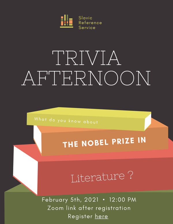 - Looking for a way to jump start your semester? Join the SRS for an afternoon of trivia!When: Feb. 5th, at noon.Our theme: The Nobel Prize in Literature.Test your knowledge and win a prize! Register today.