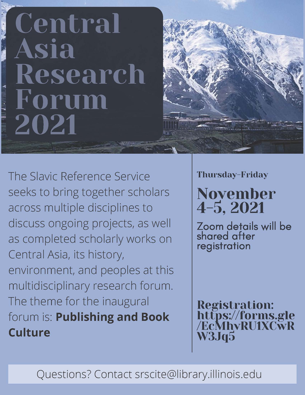 The Central Asia Research Forum seeks to bring together scholars in the arts and humanities, life, physical, and the social sciences to discuss ongoing projects, as well as completed scholarly works on Central Asia, its history, environment, and peoples at this multidisciplinary research forum. The theme for the inaugural forum is: Publishing and Book Culture. Some of the focus areas to be addressed in this forum include: