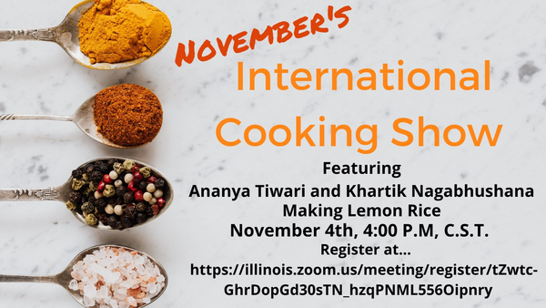Join the International and Area Studies Library for our second International Cooking Show of the Fall 2021 semester! For this installment of the Cooking Show, Ananya Tiwari and Karthik Nagabhushana will be cooking Lemon Rice. The show will last approximately one hour and will be recorded for later inclusion on the IAS Illinois Media Space page. All participants will receive a written copy of the recipe after the show and are encouraged to ask questions and interact during the show. We hope to see you there!