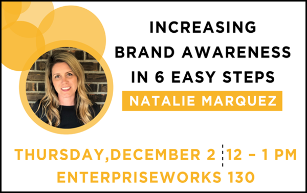 Join us for an EIR Workshop with Natalie Marquez: Increase Your Brand Awareness on Thursday, December 2 from 12:00-1:00PM.