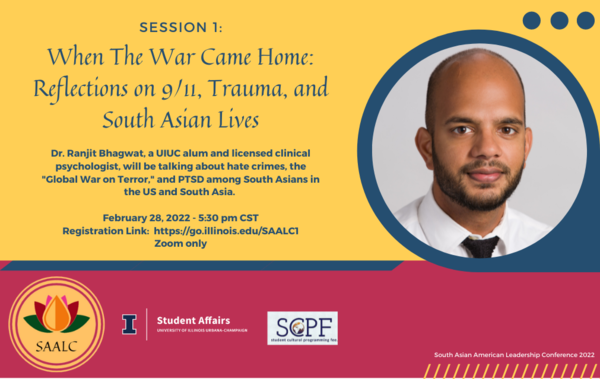 A UIUC alum and licensed clinical psychologist, Dr. Bhagwat will be talking about hate crimes, the "Global War on Terror," and PTSD among South Asians in the US and South Asia.