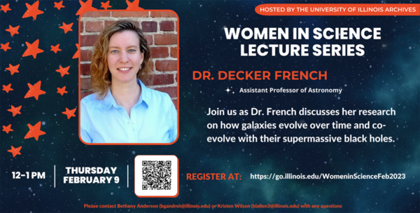 Join us as Assistant Professor of Astronomy, Dr. Decker French, discusses her research on how galaxies evolve and co-evolve with their supermassive black holes.