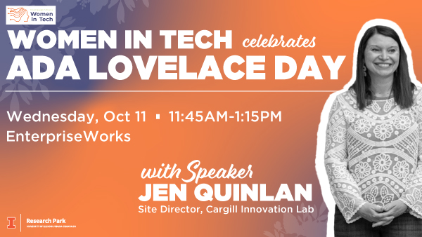 Join us for the Women in Tech Celebrates Ada Lovelace Day on Wednesday, October 11 from 11:45 AM - 1:15 PM at EnterpriseWorks. Our featured speaker this year is Jen Quinlan, Site Director of Cargill Innovation Lab. Registration for this popular event is required to ensure adequate seating and food.