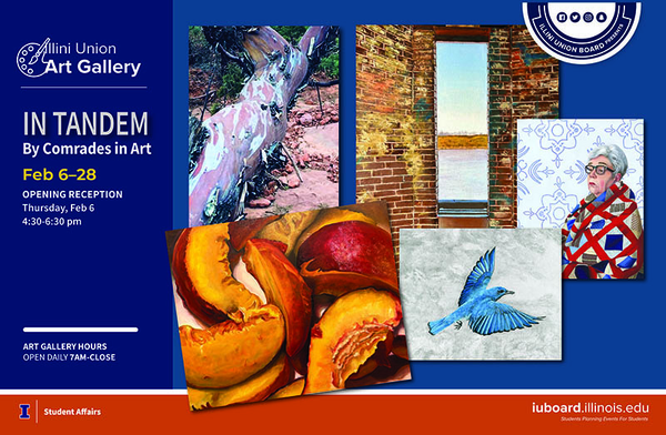 Come to the opening reception for the February Art Gallery installation titled "In Tandem" by Comrades in Art. There will be refreshments served and an opportunity to meet the artists.