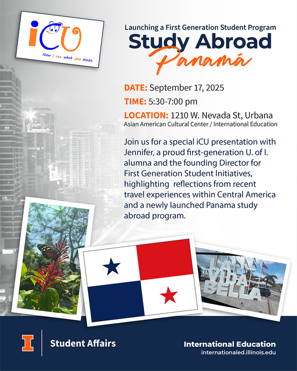 Join us for a special iCU presentation presented by Jennifer, a proud first-generation UIUC alumna and the founding Director for First Generation Student Initiatives, highlighting reflections from recent travel experiences within Central America and a newly launched Panamá study abroad program.