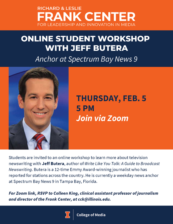 For Zoom link, RSVP to Colleen King, clinical assistant professor of journalism and director of the Frank Center, at cck@illinois.edu.