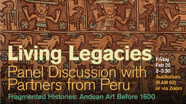 Free & Open to the PublicJoin us for a special panel featuring our partners in Peru as they share current research on Andean cultural heritage and discuss ongoing collaborations with the Center for Latin American and Caribbean Studies (CLACS) and Krannert Art Museum (KAM). The conversation will highlight the exhibition project Fragmented Histories: Andean Art Before 1600 and the transnational partnerships that make this work possible.