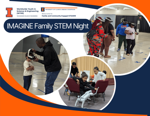 Monthly IMAGINE Family STEM Nights give middle school students and adult caregivers exposure to different areas of science, technology, and engineering through fun challenges, introductions to different types of careers, and related activities.
