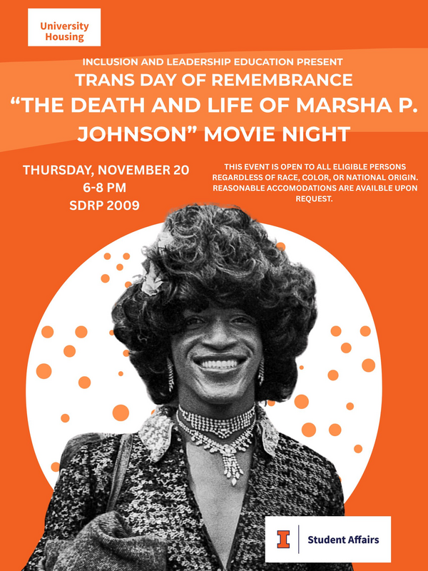 Residents will acknowledge and learn about Transgender Day of Remembrance by watching a movie called “The Death and Life of Marsha P. Johnson” which focuses on the story of who she was, the impact she made, and the tragic exploration of her death. The movie explores the impact that Marsha P Johnson, both her life and death, on the LGBTQ+ community and how it is important to discuss in a broader context.