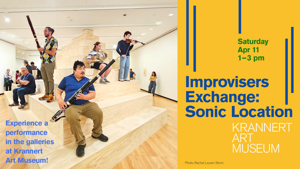 As part of Boneyard Arts Festival and Moms Weekend on campus, come experience immersive sound as you view artwork! Members of Improvisers Exchange Ensemble will create soundscapes within Krannert Art Museum’s galleries through site-specific solo performance and collective improvisation in reflection and response to artwork on display. Museum visitors are invited to experience viewing the art in these sonic locations. The museum is open Saturdays from 10 am–4 pm. **Parking nearby is free on weekends.**