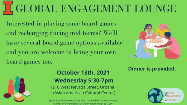Interested in playing some board games and recharging during mid-terms? We’ll have several board game options available and you are welcome to bring your own board games too. Dinner is provided. Paid for by the Student Cultural Programming Fee.