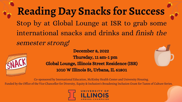 Stop by at Global Lounge at ISR to grab some international snacks and drinks and finish the semester strong!
