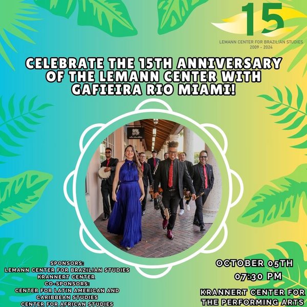 Join us in celebrating the 15th anniversary of the Lemann Center for Brazilian Studies with a vibrant, free performance by Gafieira Rio Miami at the Krannert Center!
