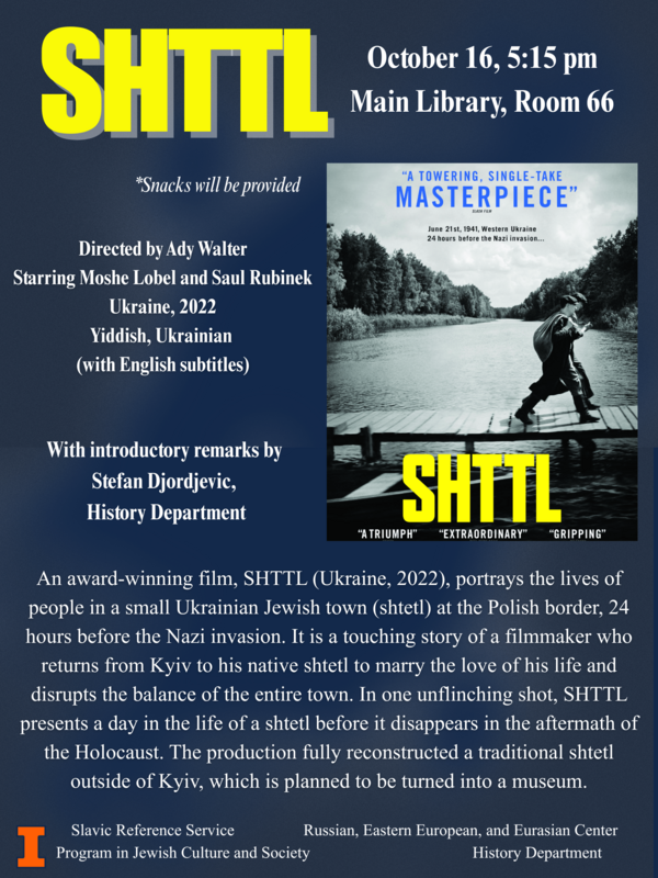 Join us for a screening of the award-winning film, SHTTL (Ukraine, 2022), that portrays the lives of inhabitants in a small Ukrainian Jewish town (shtetl) at the Polish border 24 hours before the Nazi invasion. It is a touching story of a filmmaker who returns from Kyiv to his native shtetl to marry the love of his life and disrupts the balance of the entire town. In one unflinching shot, SHTTL presents a day in the life of a shtetl before it disappears in the aftermath of the Holocaust. The production fully reconstructed a traditional shtetl outside of Kyiv, which is planned to be turned into a museum.
