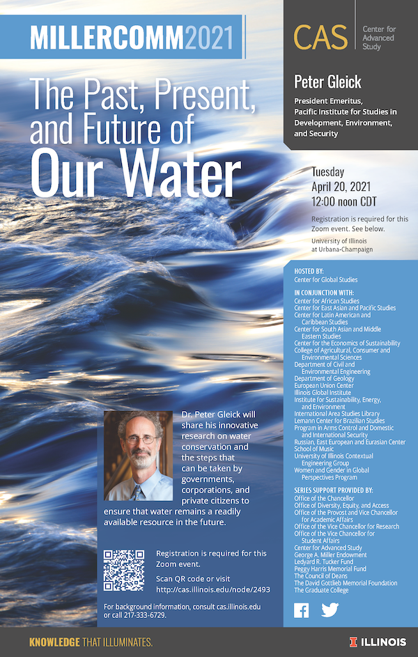 In conjunction with: Center for African Studies, Center for East Asian and Pacific Studies, Center for Latin and Caribbean Studies, Center for South Asian and Middle Eastern Studies, Center of the Economics of Sustainability, College of Agricultural, Consumer and Environmental Sciences, Department of Civil and Environmental Engineering, Department of Geology, European Union Center, Illinois Global Institute, Institute for Sustainability, Energy, and the Environmental International Area Studies Library, Lemann Center for Brazilian Studies, Program in Arms Control and Domestic and International Security, Russian, East European and Eurasian Center, Women and Gender in Global Perspectives Program