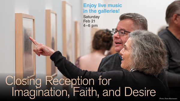 4:00 - 6:00 pmKrannert Art Museum, 500 E. Peabody Dr., ChampaignEnjoy live music in the galleries and a reception to celebrate Imagination, Faith, and Desire: Early European Prints from 1475–1800 (on view through Feb 28). The evening will include brief remarks by Curator of European and American Art Maureen Warren.