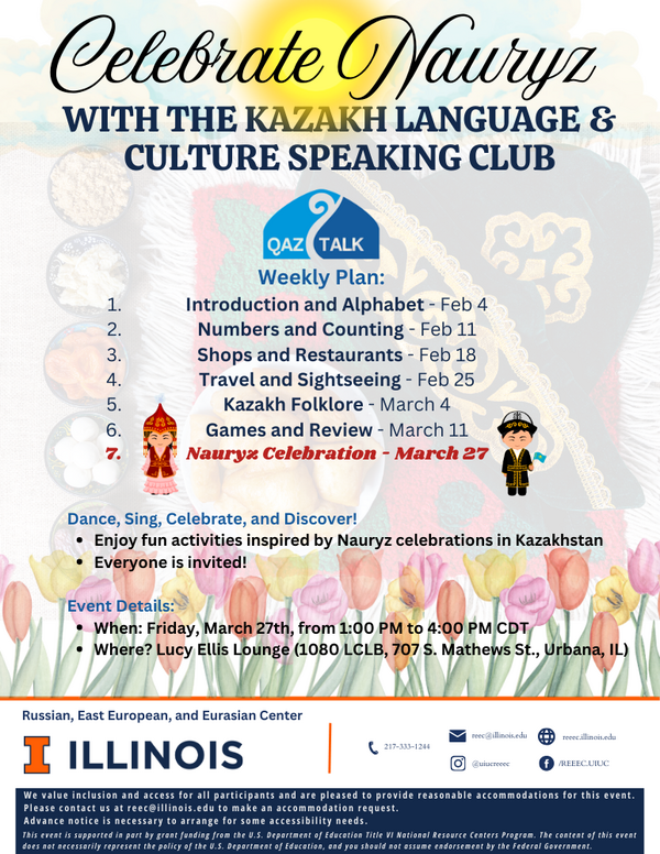 5:30 pmKrannert Center for the Performing Arts, Stage 5 lobbyМы будем говорить только по-русски! Conversation in Russian, beginners welcome!