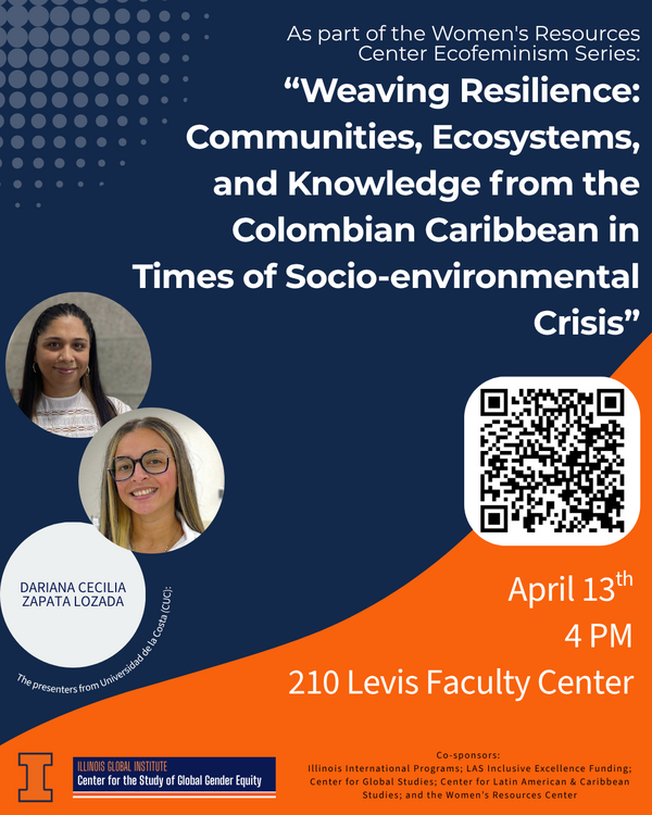 4:00 pm210 Levis Faculty Center; 919 W Illinois St #400, Urbana, IL 61801Universidad de la Costa (CUC) representatives will offer a situated perspective from the Colombian Caribbean, highlighting the deep interconnections between ecosystems and communities that inhabit them. Our speakers will share experiences from research projects aimed at understanding ecological and social vulnerability in face of climate change and structural inequalites