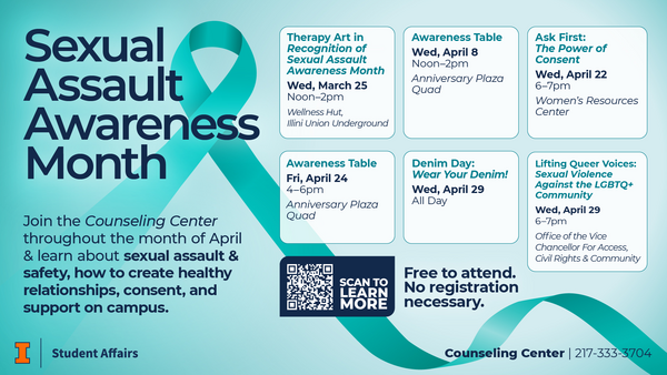5:00 - 6:00 pmWomen's Resources Center - 616 E Green St, Suite #213, Champaign IL 61820Join the WRC every month as we explore different elements of healthy relationships! This month's topic: Consent! Food will be provided for the first 20 participants. All are welcome!