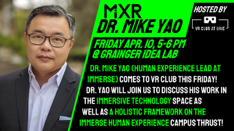 5:00 - 8:00 pmIDEA Lab, Basement of Grainger Engineering Library Information CenterVR Club at UIUC hosts meetings on Fridays from 4 - 7 PM at the IDEA Lab. Meetings start with MiXR (Meetings involving Extended Reality), an academic forum discussing topics regarding extended reality technology and the metaverse, followed by VR activities. - The Grainger Engineering Library Information Center IDEA Lab